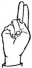 На ћирилици написано МИНА МЕЋАВА састоји се из 10 слова [?]. Исписано ћириличном једноручном азбуком за глувонеме: